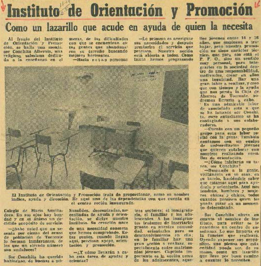 El 17 de noviembre de 1975 marcó el inicio de una historia que ha transformado vidas en Torrent. Ese día se inauguraron los primeros locales del Instituto de Orientación y Promoción, impulsado por las Hijas de María Auxiliadora, con el objetivo de acompañar y orientar a las familias más vulnerables. En palabras de S. Conchita Alberola, su primera responsable, la misión era clara: