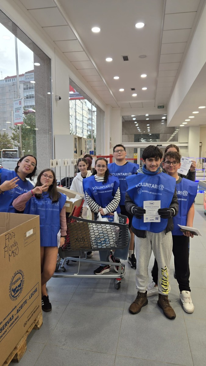 El pasado viernes 7 de noviembre, en Vigo, un grupo de alumnos y alumnas de 1º a 4º de la ESO participó, junto a sus profesores y familias, en la Gran Recogida 2025 organizada por la Fundación Provincial Banco de Alimentos. Durante toda la tarde, en el supermercado Froiz de la Avenida de la Florida, vivieron una experiencia diferente, fuera de las aulas, que les permitió mirar la realidad con otros ojos.